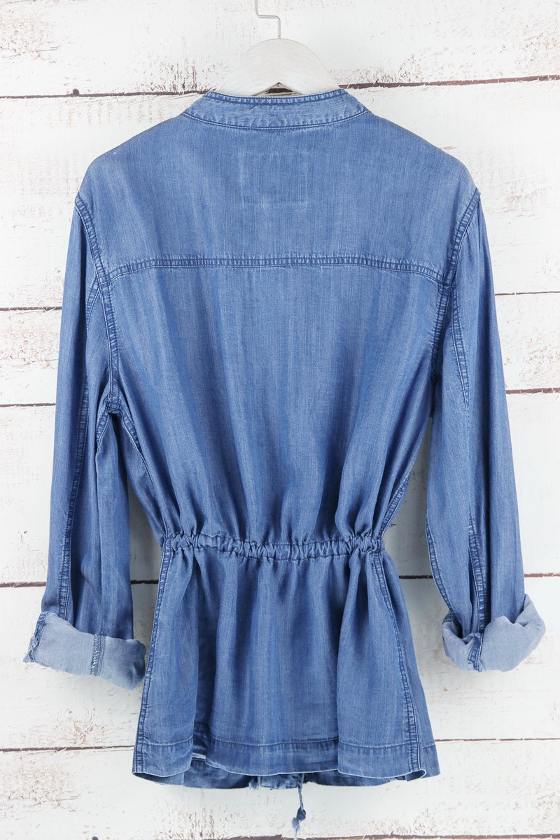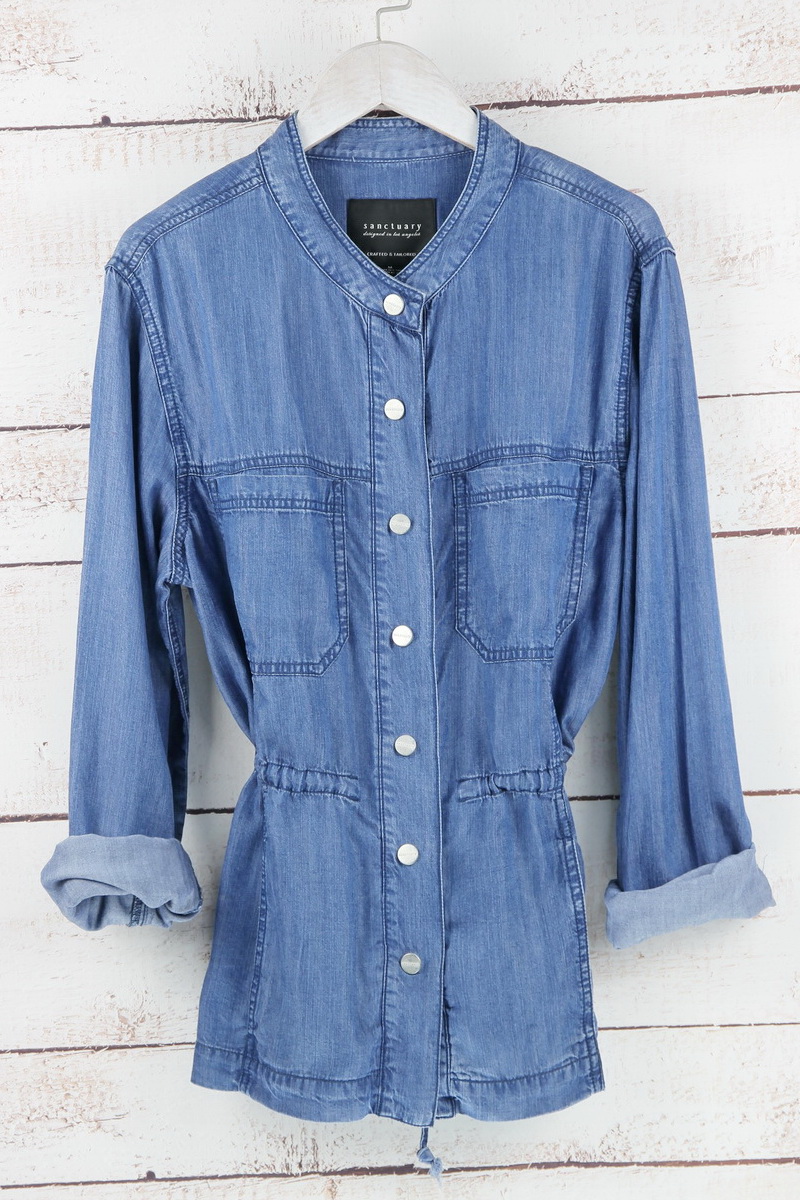 Metal zipper and snap button at front